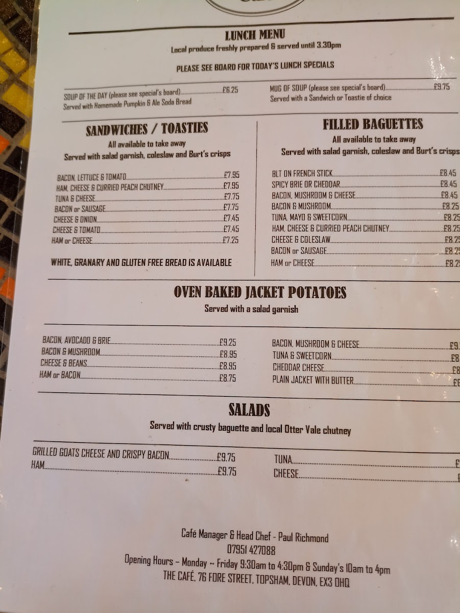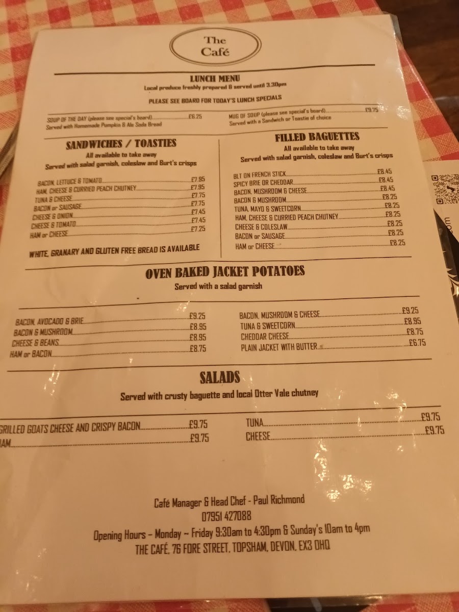 Throughout the day, the café maintains a warm, inviting atmosphere where lighter bites like goat's cheese and bacon salad or a toasted teacake with butter complement the quiet buzz around you. Afternoon tea choices, including the traditional Devon cream tea, provide a gentle pause with familiar flavours and comforting textures.